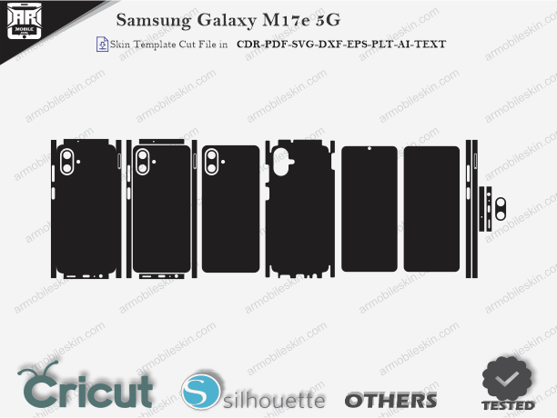 Downloadable Samsung Galaxy M17e 5G Skin Template Vector Cut File for vinyl cutting on various cutter. maximum coverage provided; buttons are easily accessible. The Cut ensures Smooth and easy skin application, especially at rounded corners.